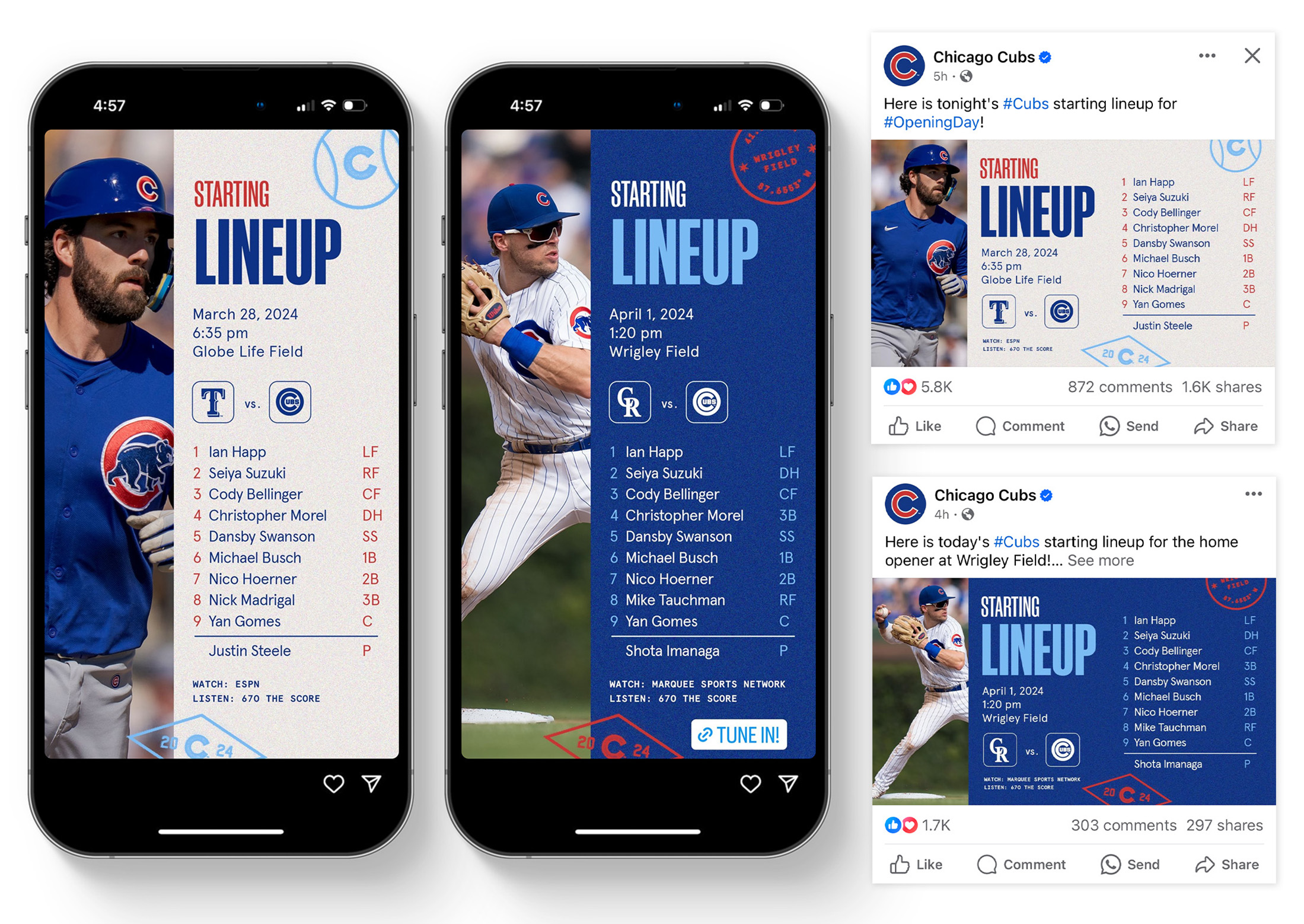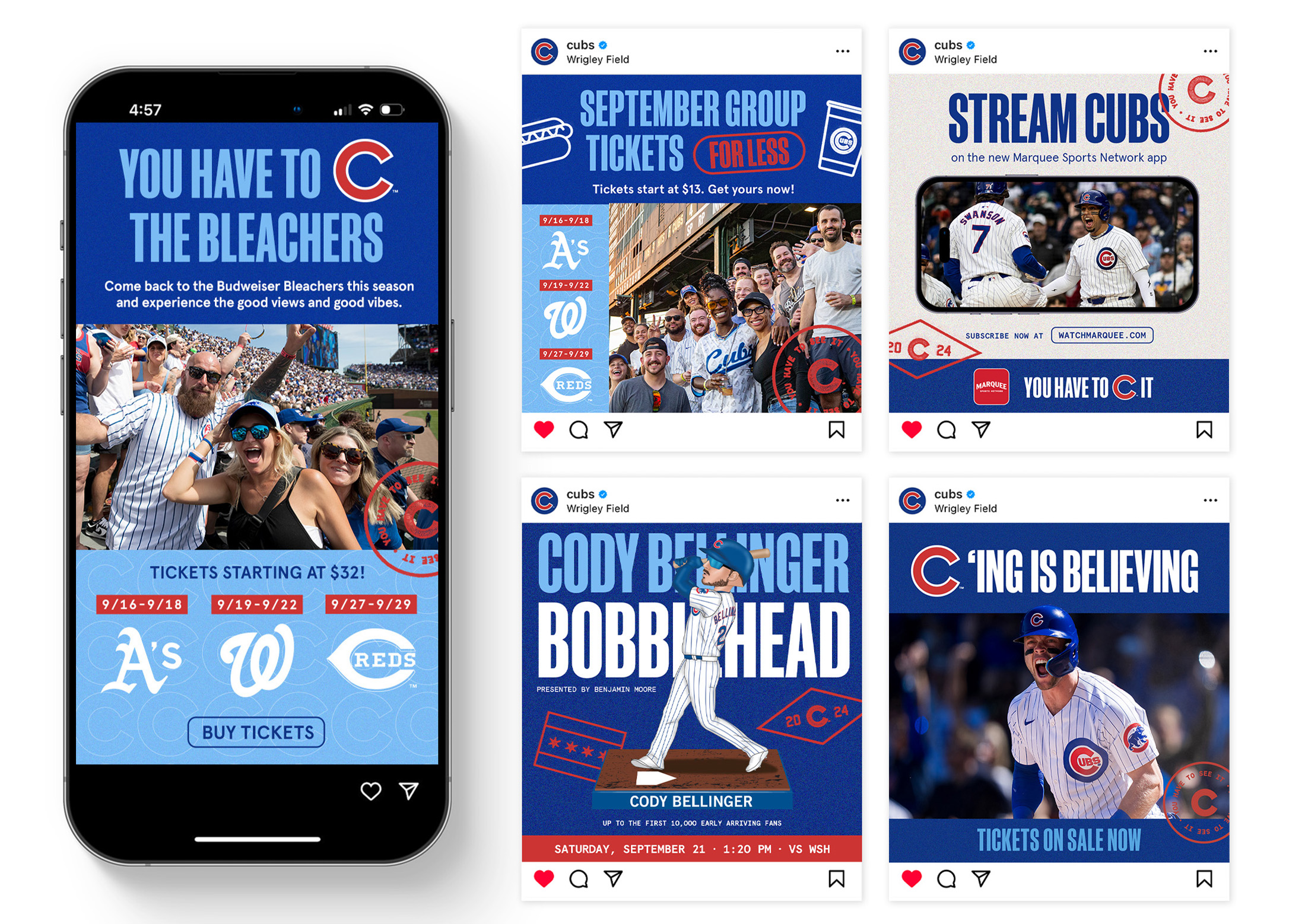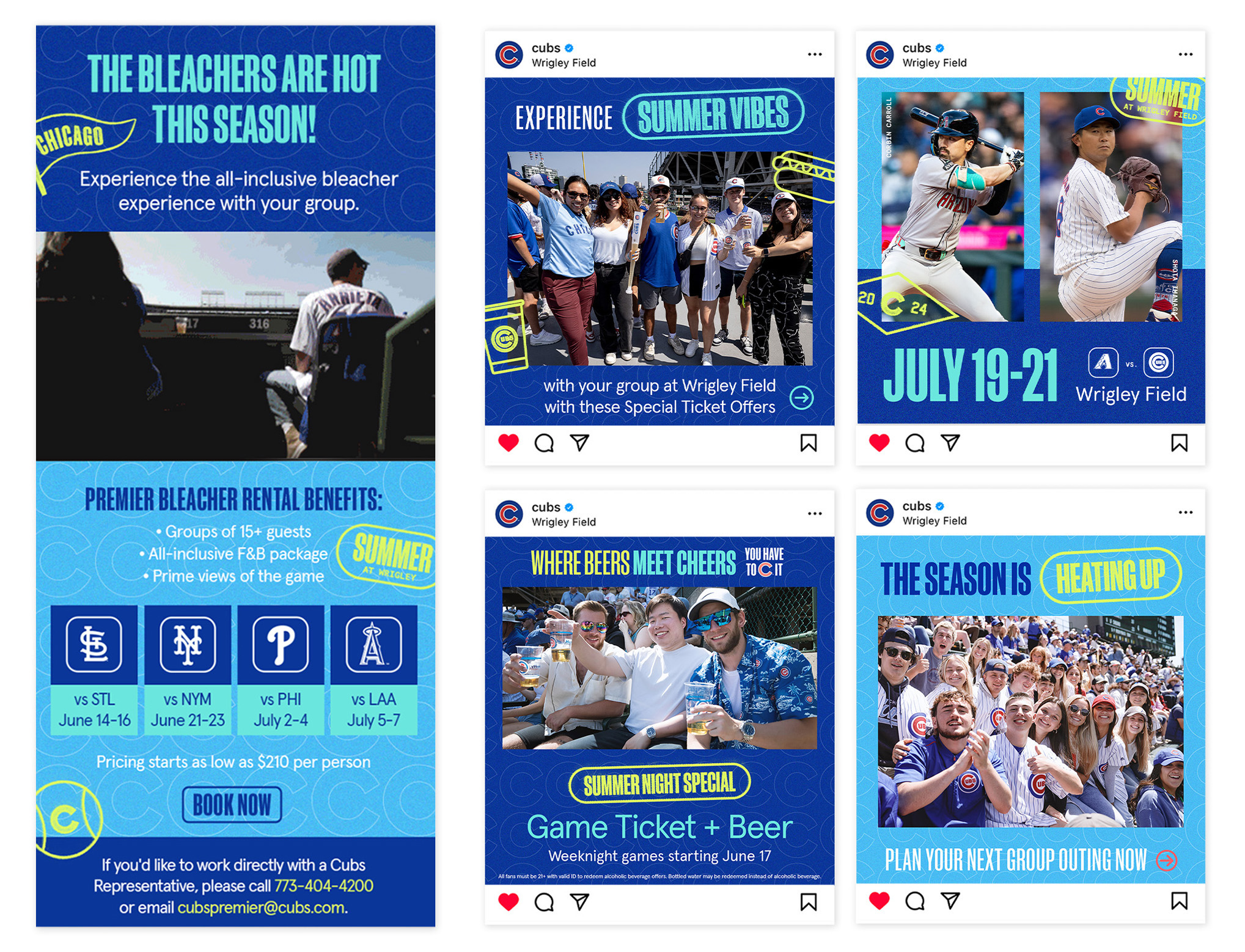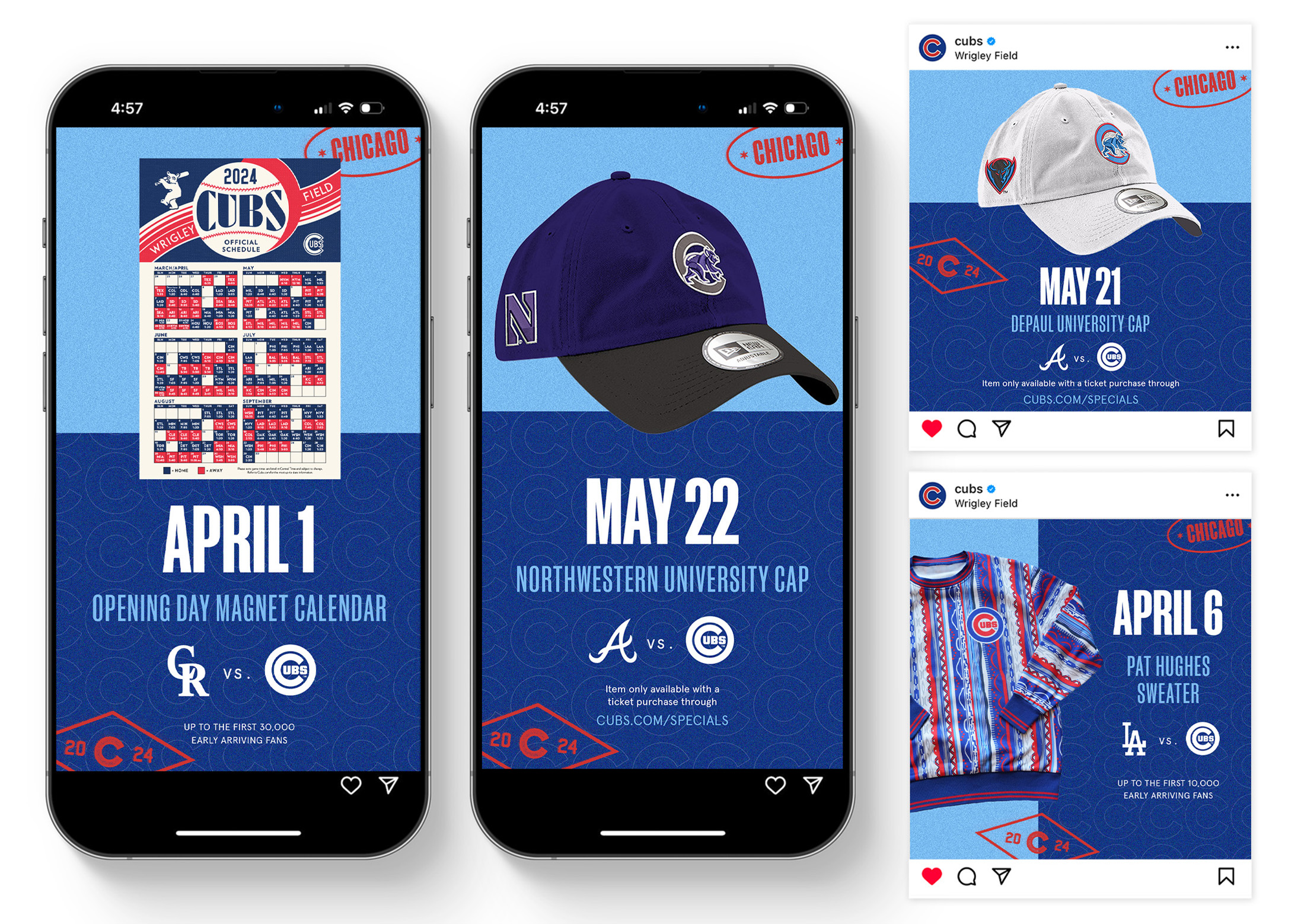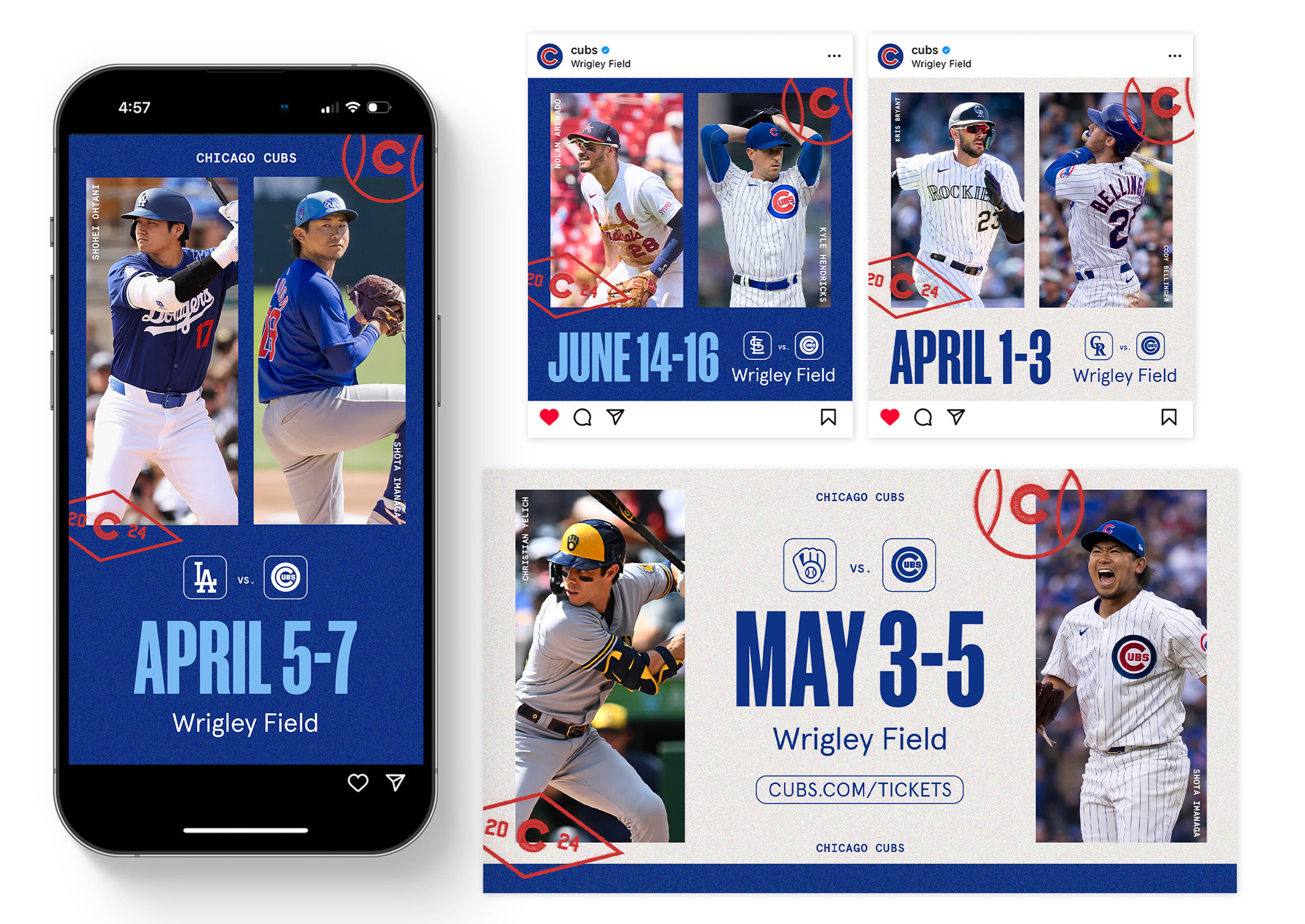 In 2024, I played a key role in the development and execution of the Emmy Award-winning Chicago Cubs 2024 Brand Campaign “You Have To See It”, produced in collaboration with Energy BBDO. As Senior Graphic Designer, I led the Graphic Design trend decks that provided Energy BBDO with Art Direction for developing the creative look and feel of the campaign. Throughout the development process I was responsible for feedback and guidance and once a final direction was approved, I led the execution of various components of the campaign, including: Social Game Day templates, Website Skins, Promotional Item Creative, Player Matchup Ads, Email Marketing, and more.