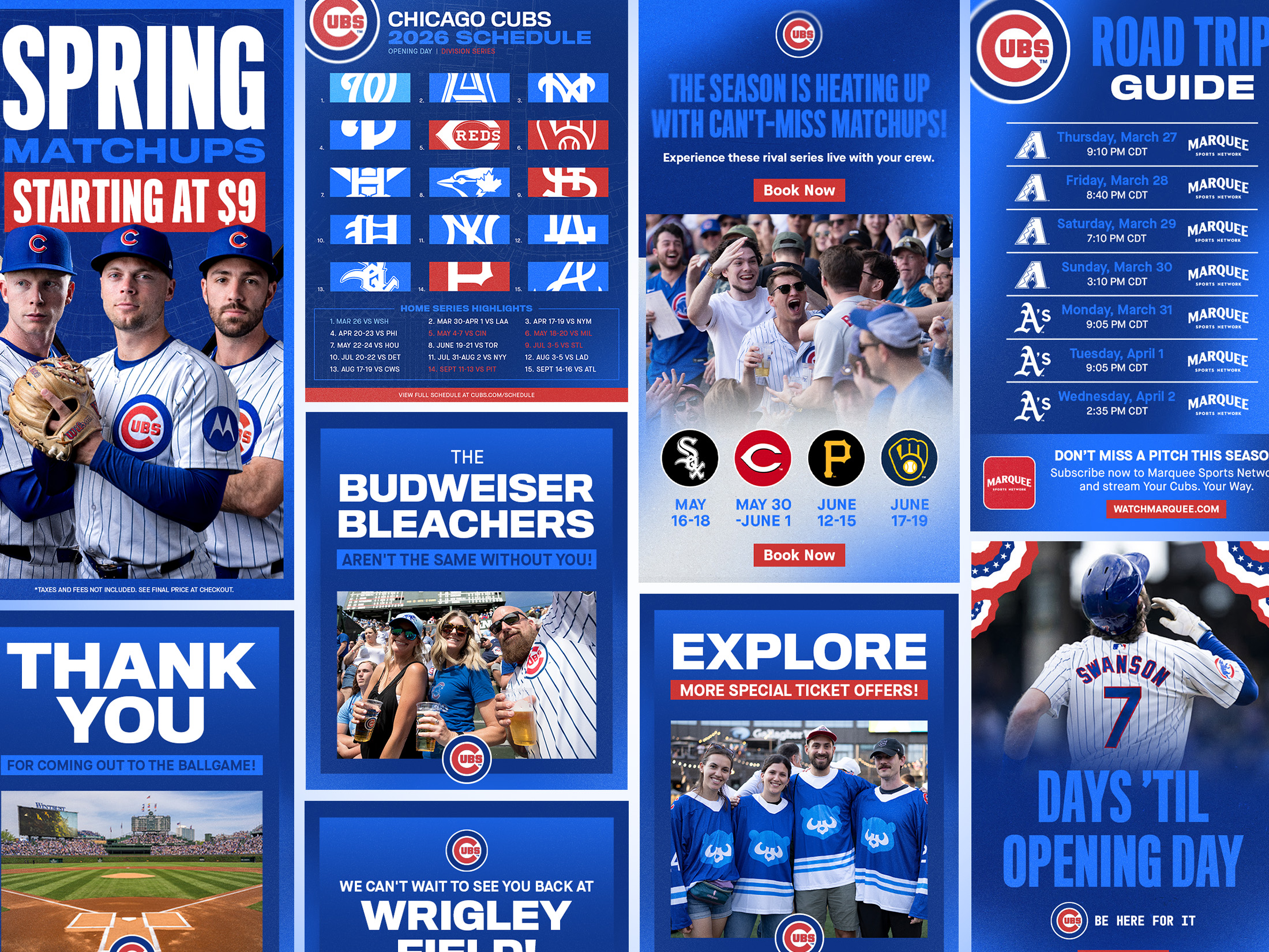 In 2025, I played a key role in the development and execution of the Chicago Cubs 2025 Brand Campaign “Be Here For It”. As Senior Graphic Designer, I led the exploration and creative development of the look and feel of the campaign, including font and color selection and the creation of background patterns and other graphic treatments to define the look.